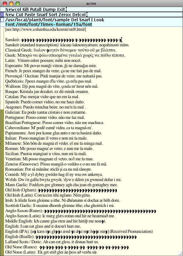 acme using native OS X font bitmaps